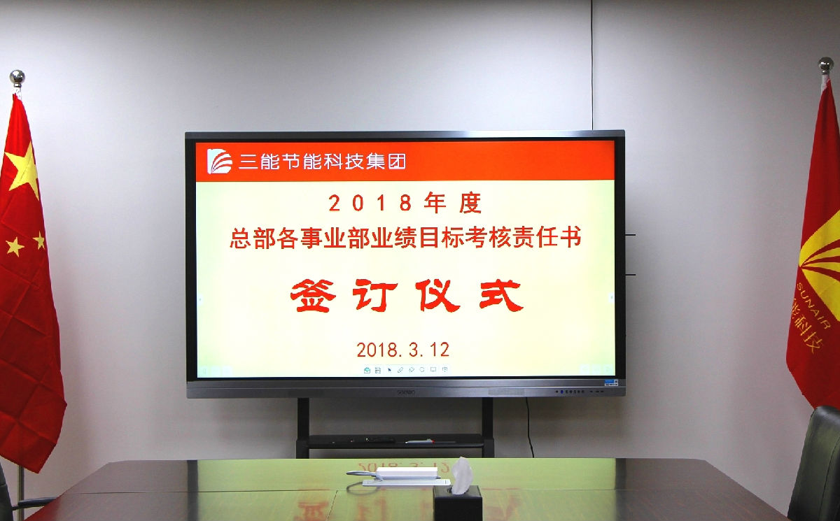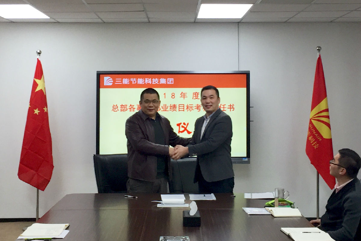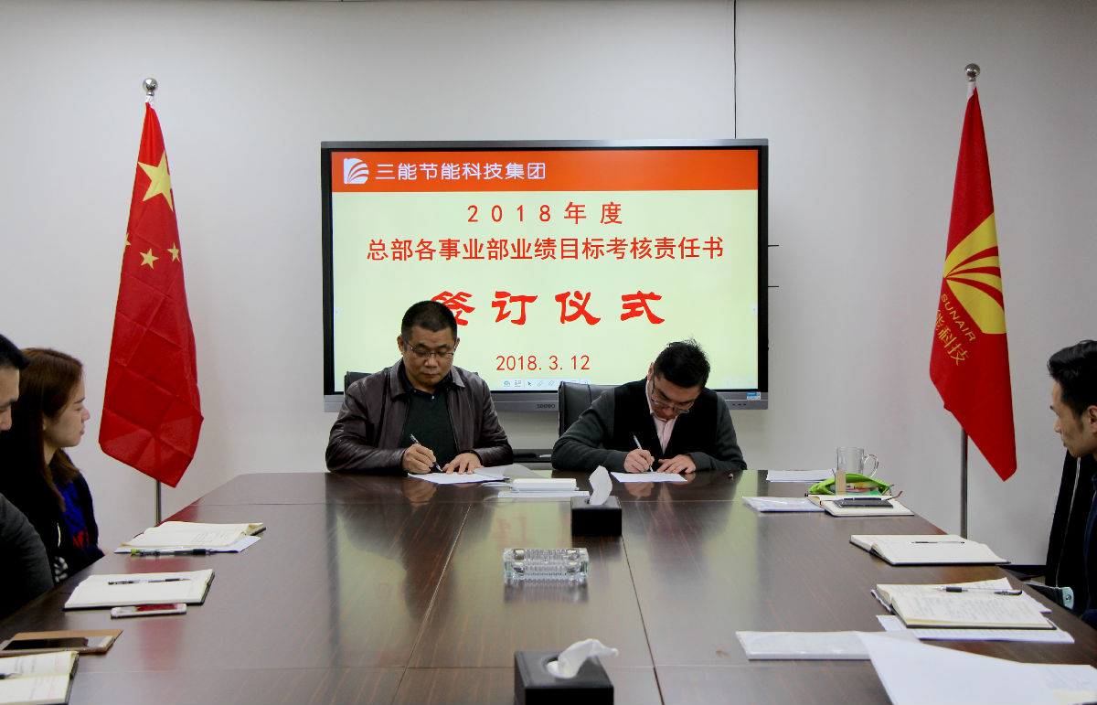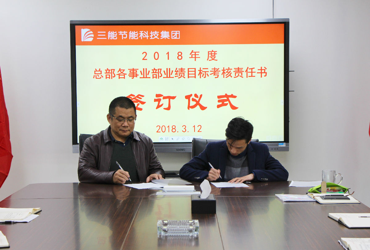 集团董事长兼总裁郭建涛代表公司签字并在签字仪式上作重要讲话。郭总指出:今年是三能公司创立12周年的重要年轮,面对节能行业新的更大的发展机遇,经过十余年的实力积淀,我们一定要有所作为、也一定能有新的作为。整个集团的年度业绩目标是经营收入比去年翻一番。因此,落实好各事业部的目标和任务、建立健全能够激发业务人员积极性和创造力的绩效考核奖励制度、各职能部门有效配合与周到服务是实现公司年度总体经营目标和未来三年战略目标的关键。今天恰逢是植树节,希望各事业部的业务和团队犹如播种的树苗,沐浴春光,能够生根、发芽、茁壮成长!